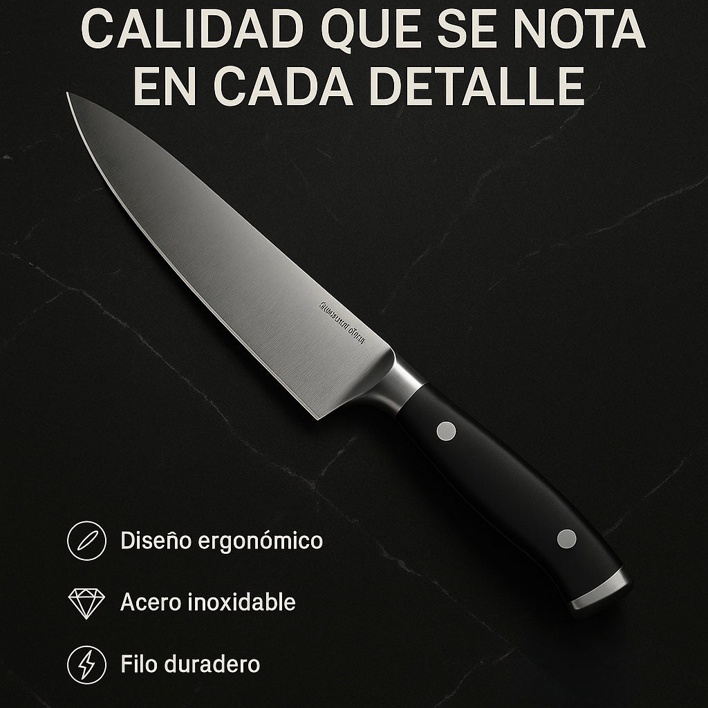 Con CorteX todo eso se acaba. Diseñados con acero inoxidable de alta resistencia, estos cuchillos ofrecen un filo duradero y cortes precisos que transforman la experiencia en tu cocina. Desde rebanar pan hasta trozar carne, cada movimiento se siente ligero y profesional.
